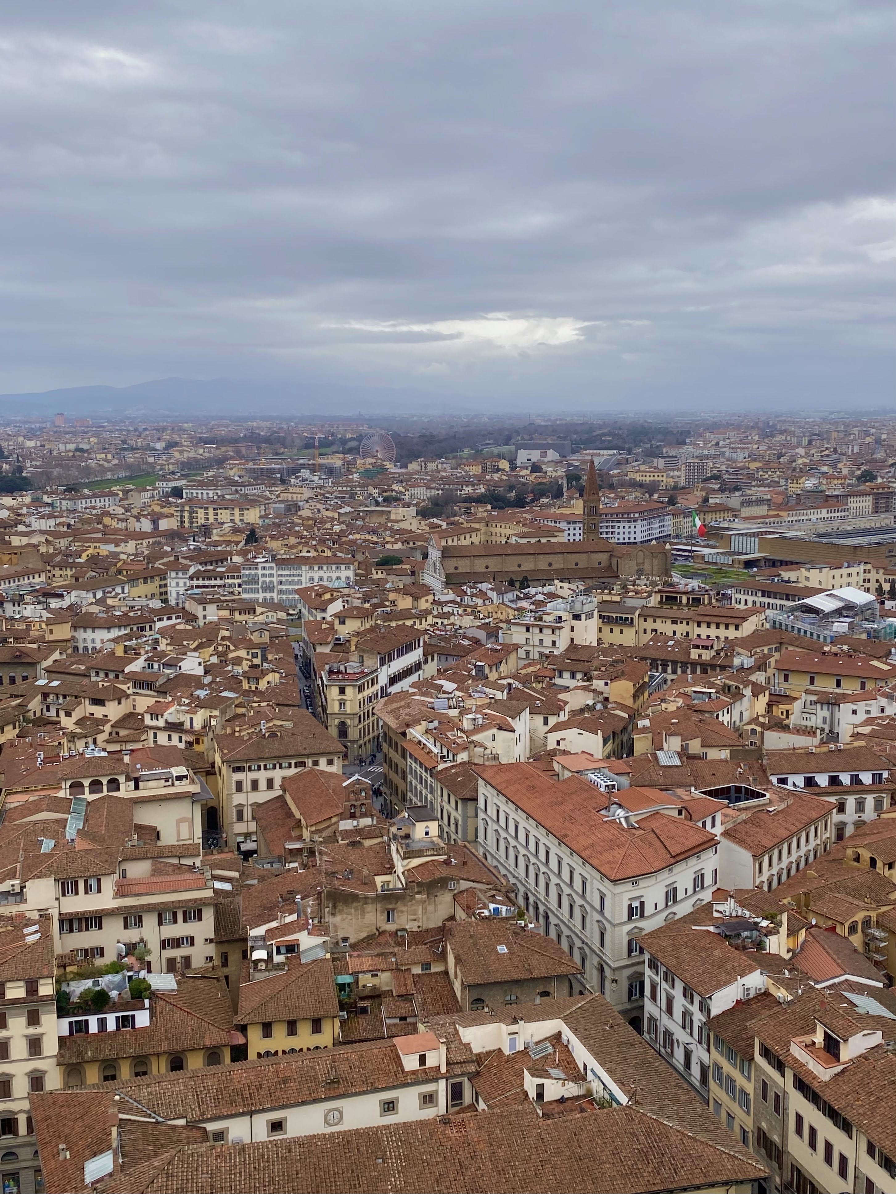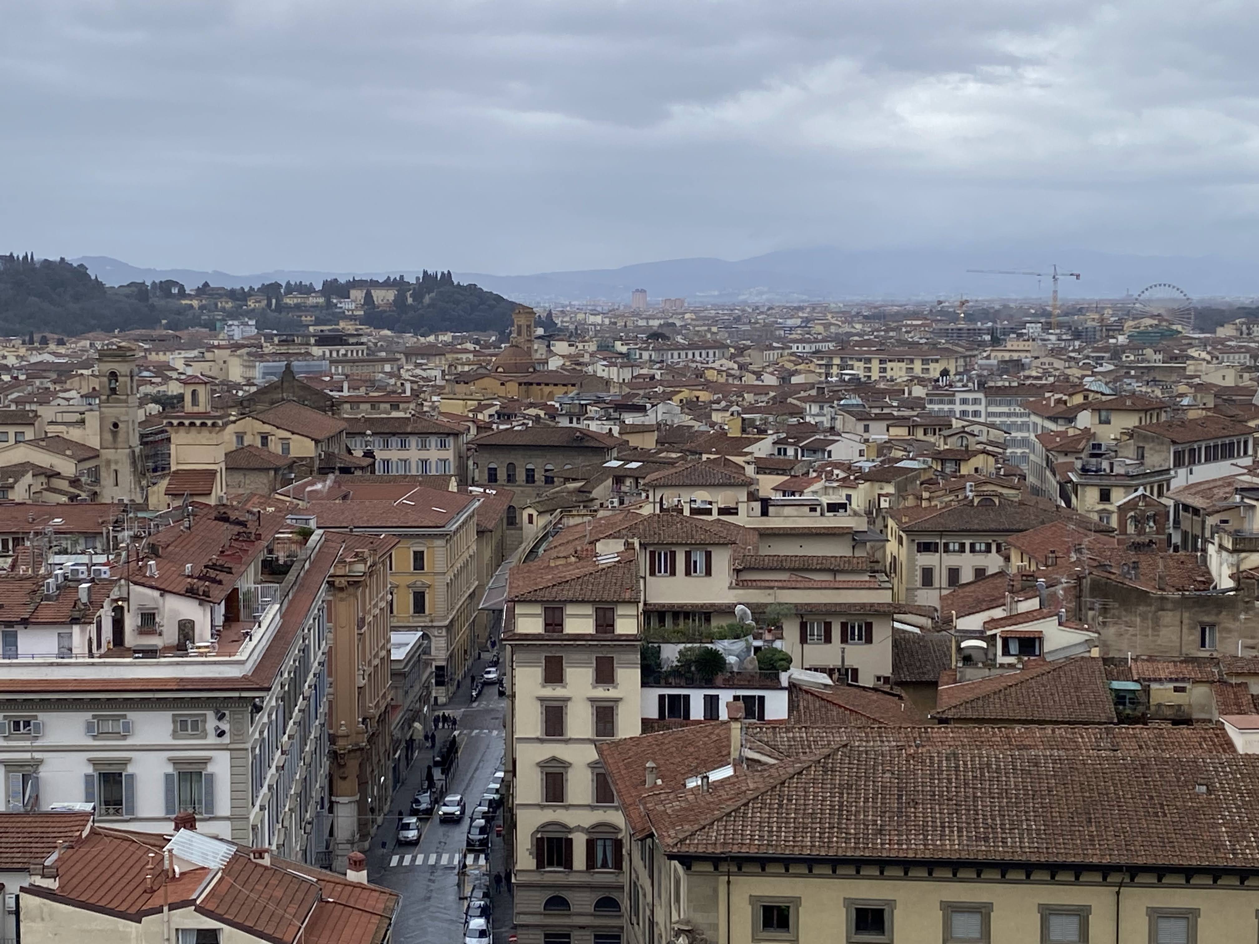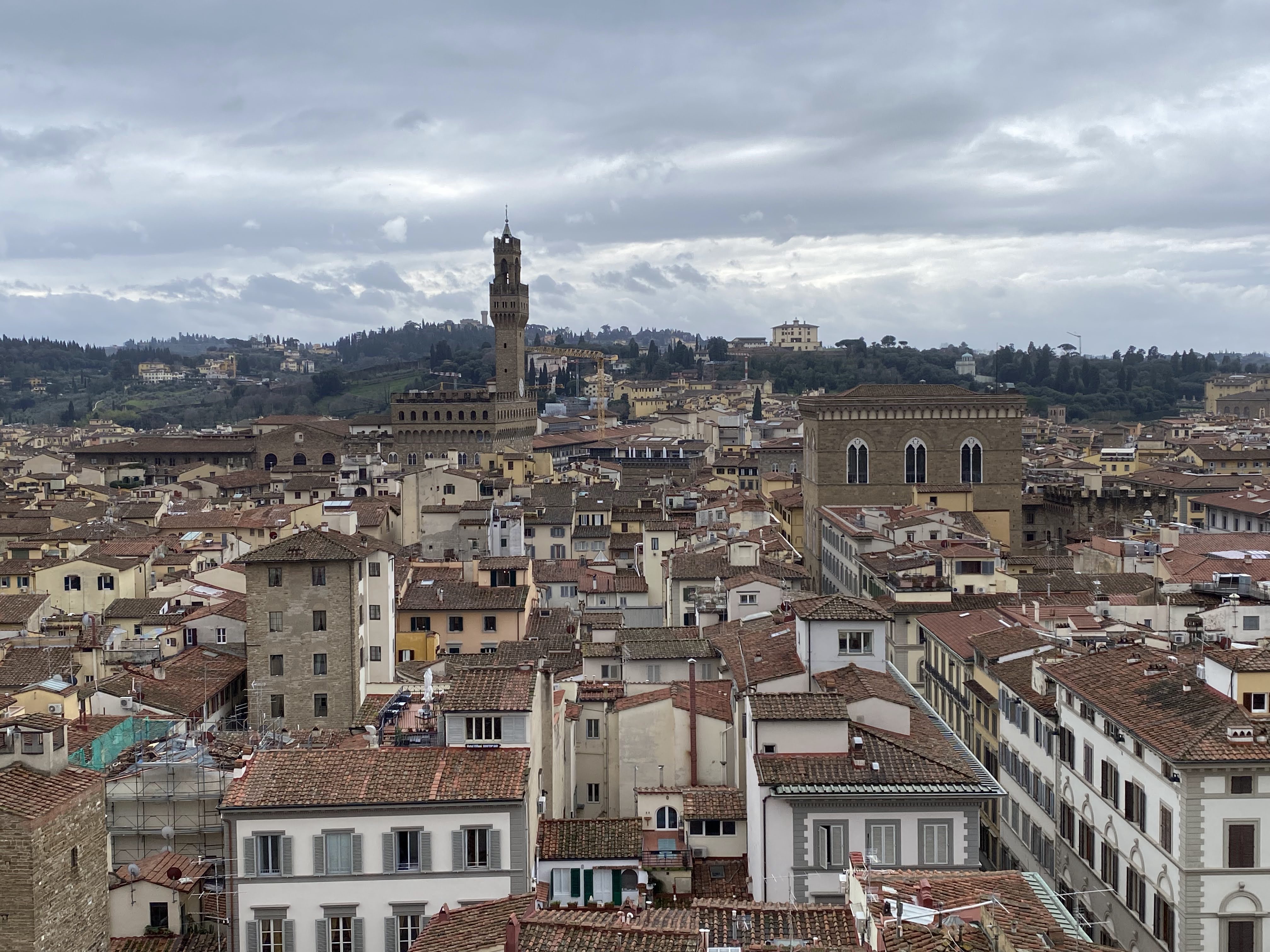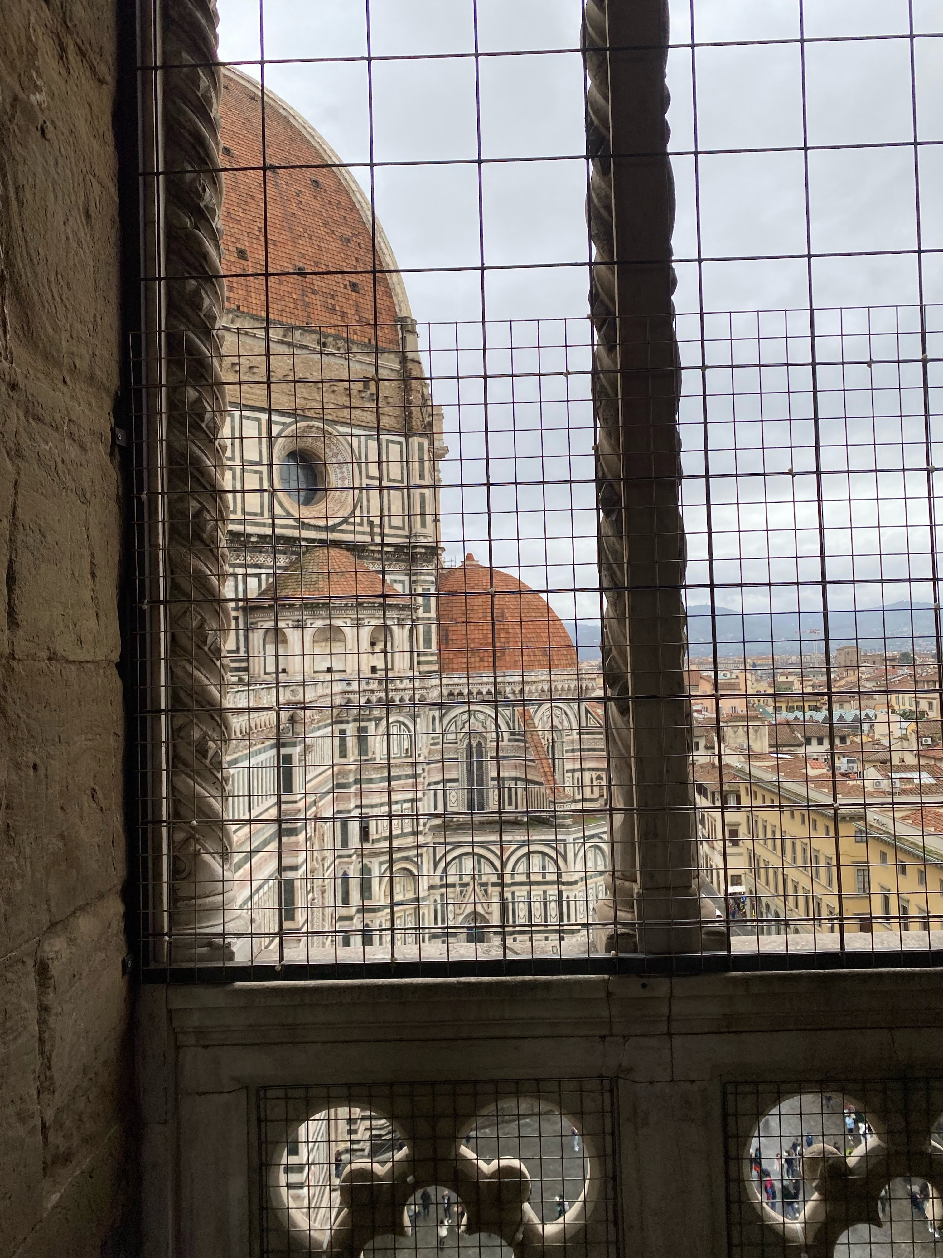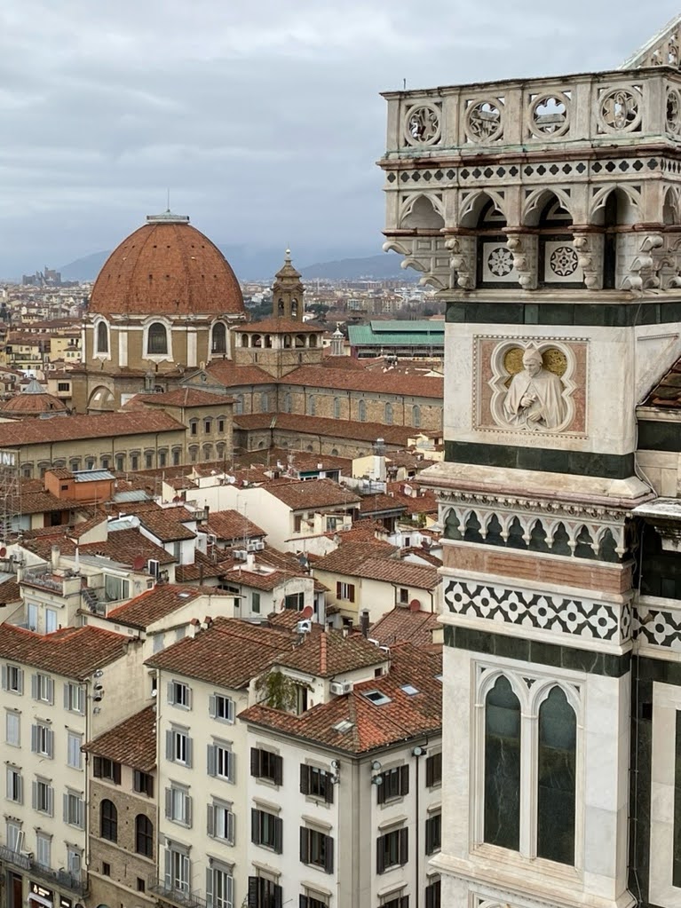 조토의 종탑을 올라가려면 414개의 계단을 올라야 한다. 평소에 운동을 하지 않으면 숨이 상당히 찬다. 그래도 중간중간 쉬어 갈 수 있는 층이 있어서 쉬엄쉬엄 올라갔다. 그렇게 올라간 종탑에서 바라본 피렌체의 풍경은 참 좋았다. 두오모는 물론 베키오 궁, 피티 궁전, 여러 성당들을 찾아보는 재미가 있었다. 비록 날씨가 흐려서 아쉬웠지만 이후에 맑은 피렌체의 하늘을 볼 수 있어서 좋았다.